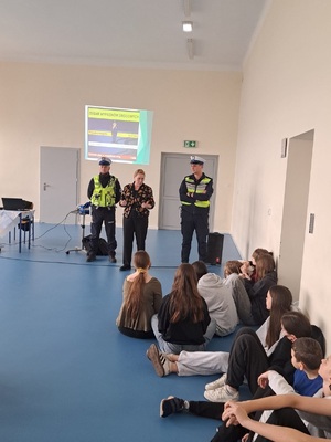 Spotkanie opoczyńskich policjantów i przedstawiciela Wojewódzkiego Ośrodka Ruchu Drogowego w Piotrkowie Trybunalski wraz z uczniami Szkoły Podstawowej im. Polskich Olimpijczyków w Drzewicy na temat bezpieczeństwa niechronionych uczestników ruchu drogowego.