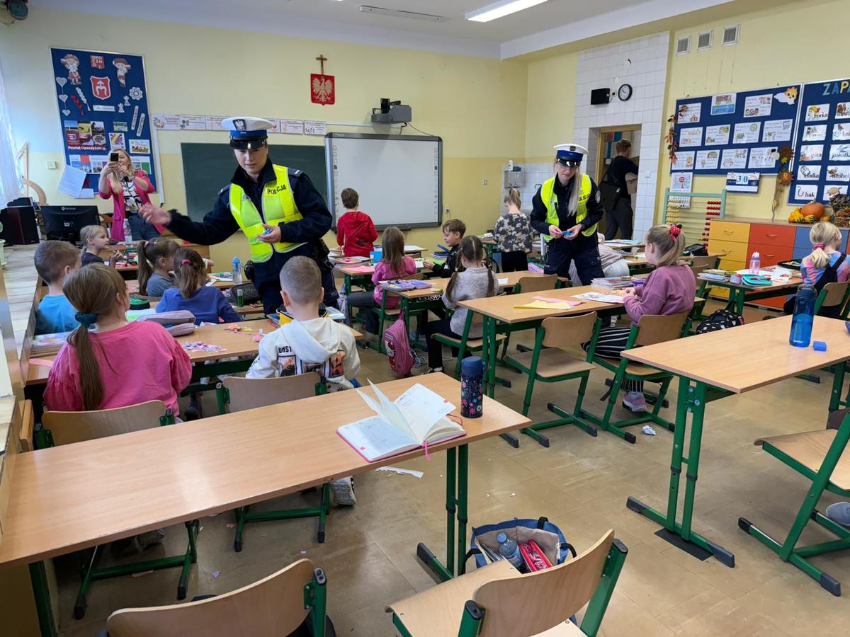 W ramach akcji mundurowi odwiedzili także uczniów Szkoły Podstawowej nr 1 w Opocznie, gdzie przeprowadzili zajęcia edukacyjne dotyczące bezpieczeństwa pieszych i rowerzystów. Dzieci dowiedziały się dlaczego warto być widocznym na drodze.