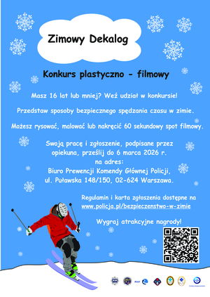 W ramach akcji "Kręci mnie bezpieczeństwo w zimie" Biuro Prewencji KGP wraz z partnerami projektu ogłosiło konkurs plastyczno-filmowy dla dzieci i młodzieży pod nazwą „Zimowy Dekalog”. Zachęcamy do wzięcia udziału w wydarzeniu.